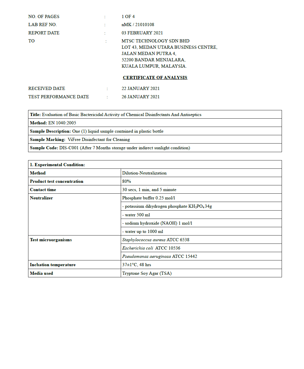 ViFREE Disinfectants for Cleaning (Concentrated)